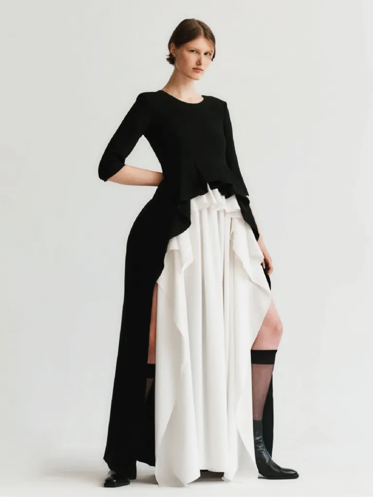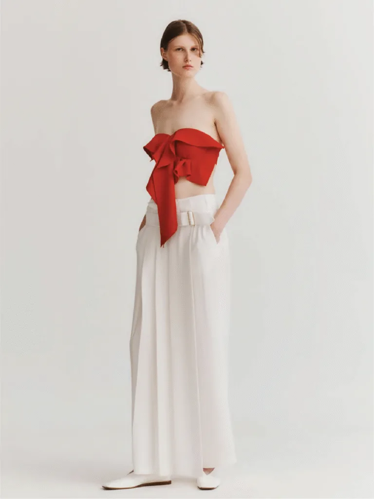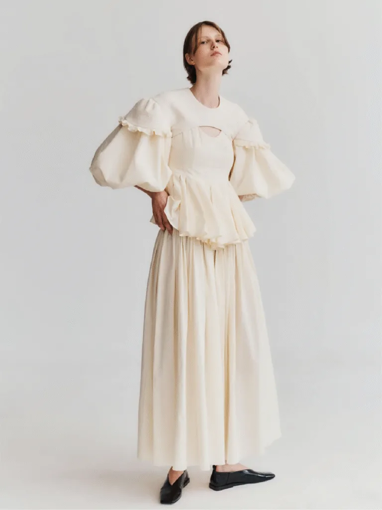 Following stints with high profile designers like Yohji Yamamoto, Alexander Wang, and Raf Simons, South Korean designer Ashlynn Park founded her eponymous label in 2019 in New York. She combines pattern making techniques perfected in Japan with the Western art of draping to create simple designs that evoke confidence and ease. The brand celebrates powerful femininity and timeless elegance while incorporating strategies to ensure minimal waste. Park was also selected as a finalist for the LVMH Prize 2022.