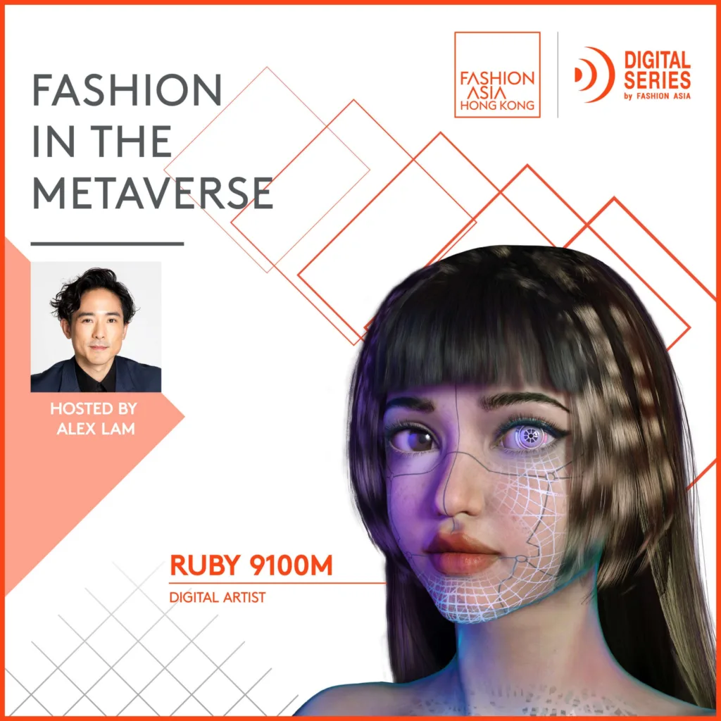 RUBY 9100M is a digital artist in Hong Kong. Her virtual identity, also known as RUBY 9100M, is a trans-human digital being that is pushing the boundaries of reality and digital ingenuity. Her creativity and persona have garnered respect across multiple industries leading her to collaborations with fashion and tech magazines, brands, artists and galleries.